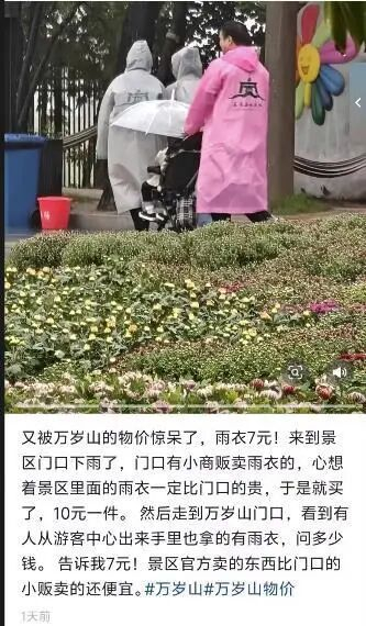 同一首歌 发表于 2025-10-2 02:13 门口雨衣卖10元景区内只要7元 女子游万岁山武侠城被物价“惊呆了” 一名女子到河南开封万岁山武 ...